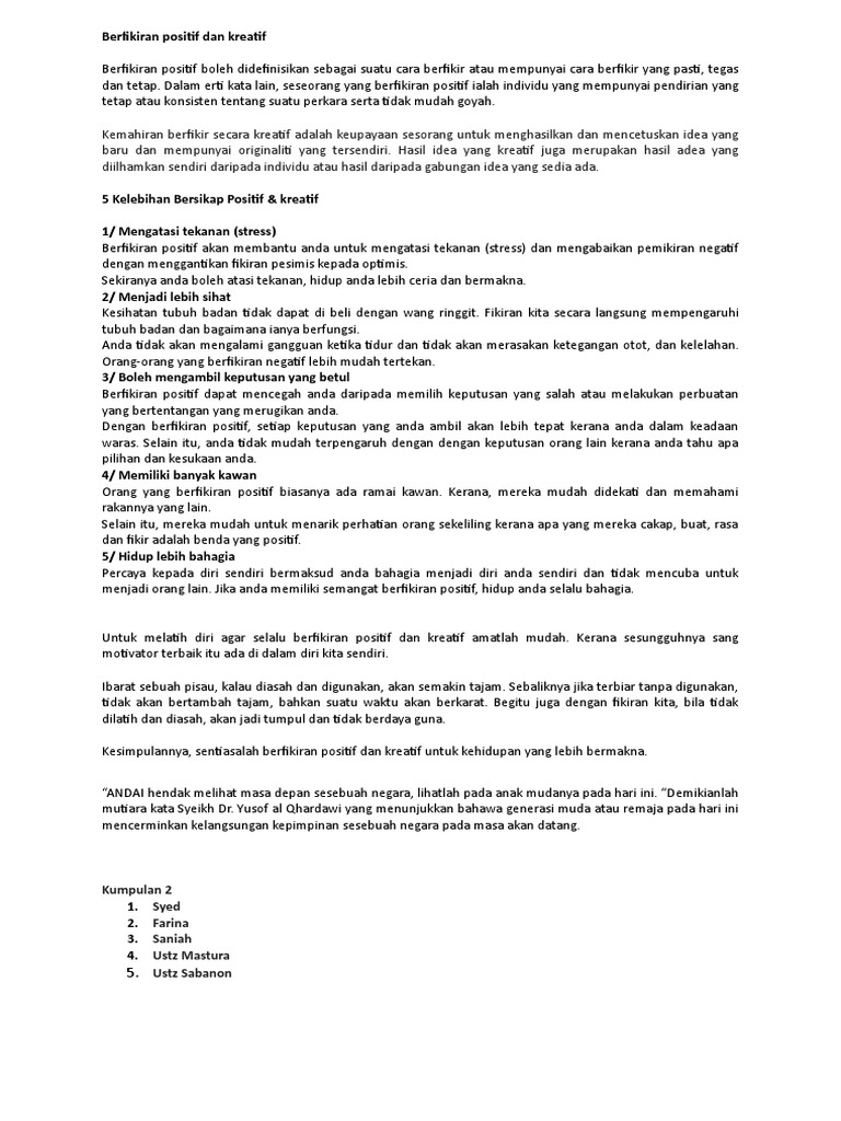 Berfikiran Positif Dan Kreatif Pdf